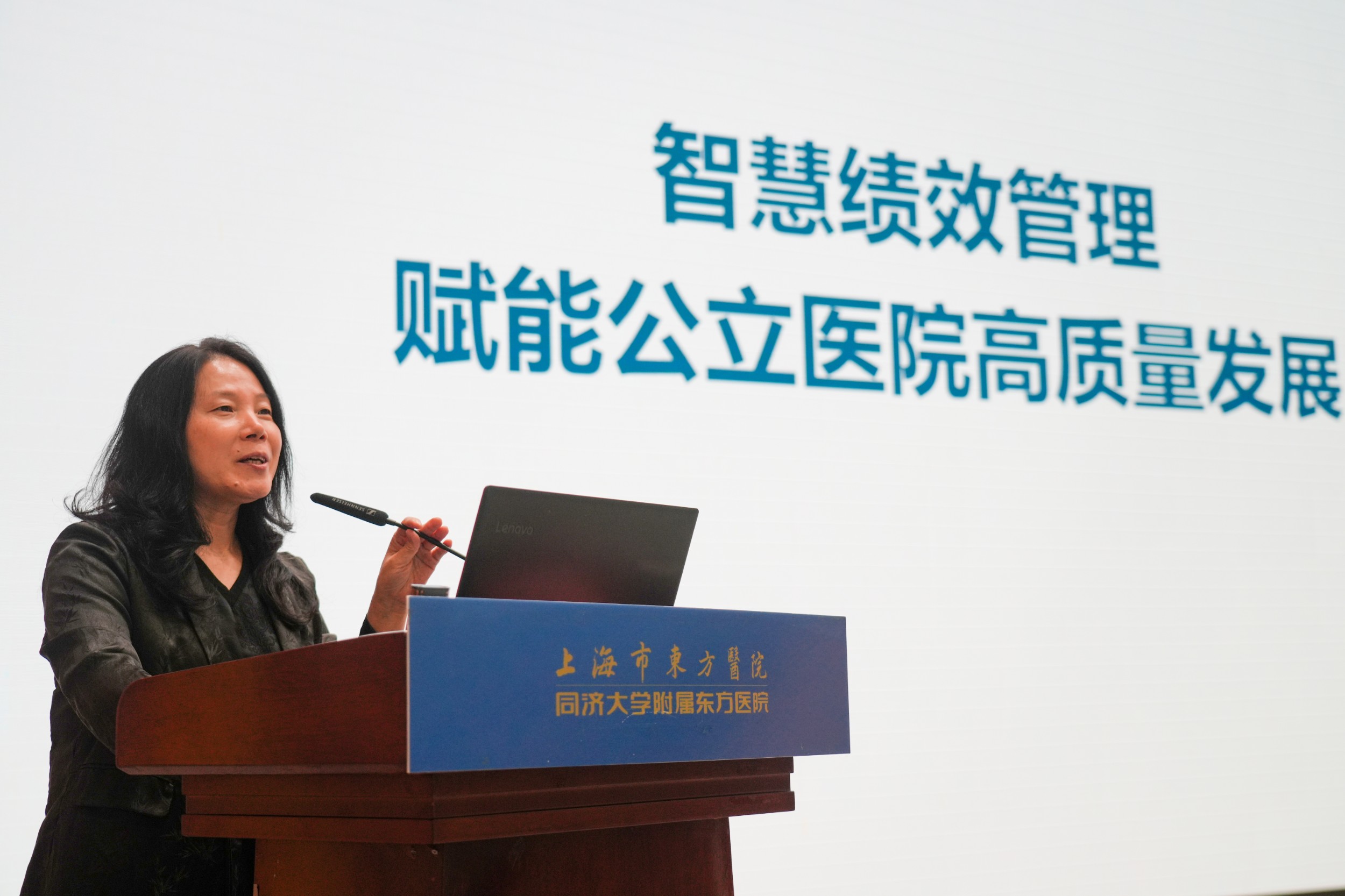 王爱荣以题为《智慧绩效管理赋能公立医院高质量发展》作报告。她表示,东方医院在医疗监管上要始终坚持刀刃向内,强化医院内涵建设,在绩效管理上要持续加强医院的运营管理和信息化管理。她指出,为落实公立医院高质量发展重点,夯实医疗质量和科技创新内容,东方应加大对疑难杂症、前沿技术和科技创新的支持力度,加强医院的数智融合驱动发展。